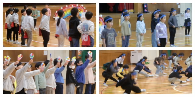 3年生の力強い「ソーラン節」、5年生の全校○×クイズでは笑顔があふれ、会場全体が楽しい雰囲気に