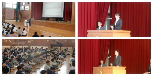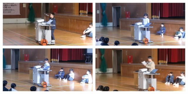 本日、修了式と離任式が行われました。修了式に先立ち、代表児童が二学期の歩みを振り返り、仲間と支えて