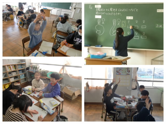 理科の時間に 豆電球と乾電池を使った実験をしました。シンプルな実験ですが、子どもたちはとても