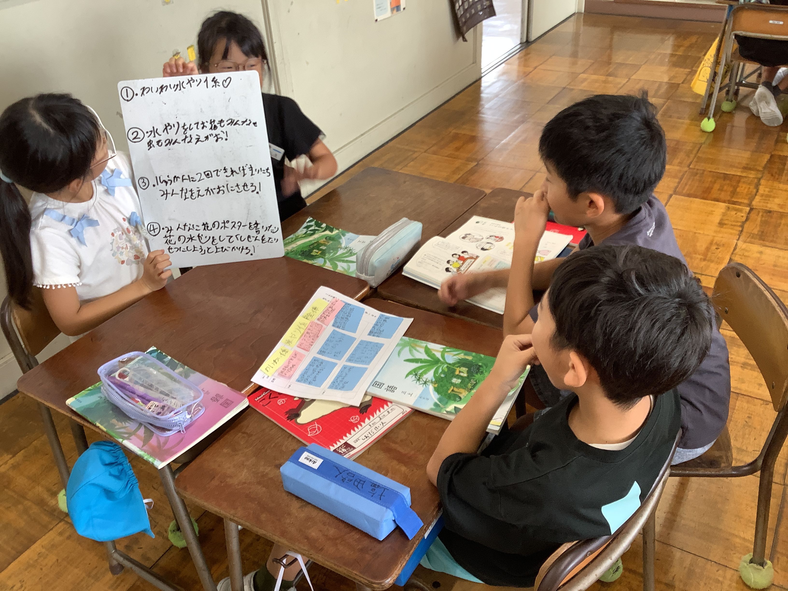 どのグループも、話し合った内容や係の仕事内容をしっかりと伝えることができていました。