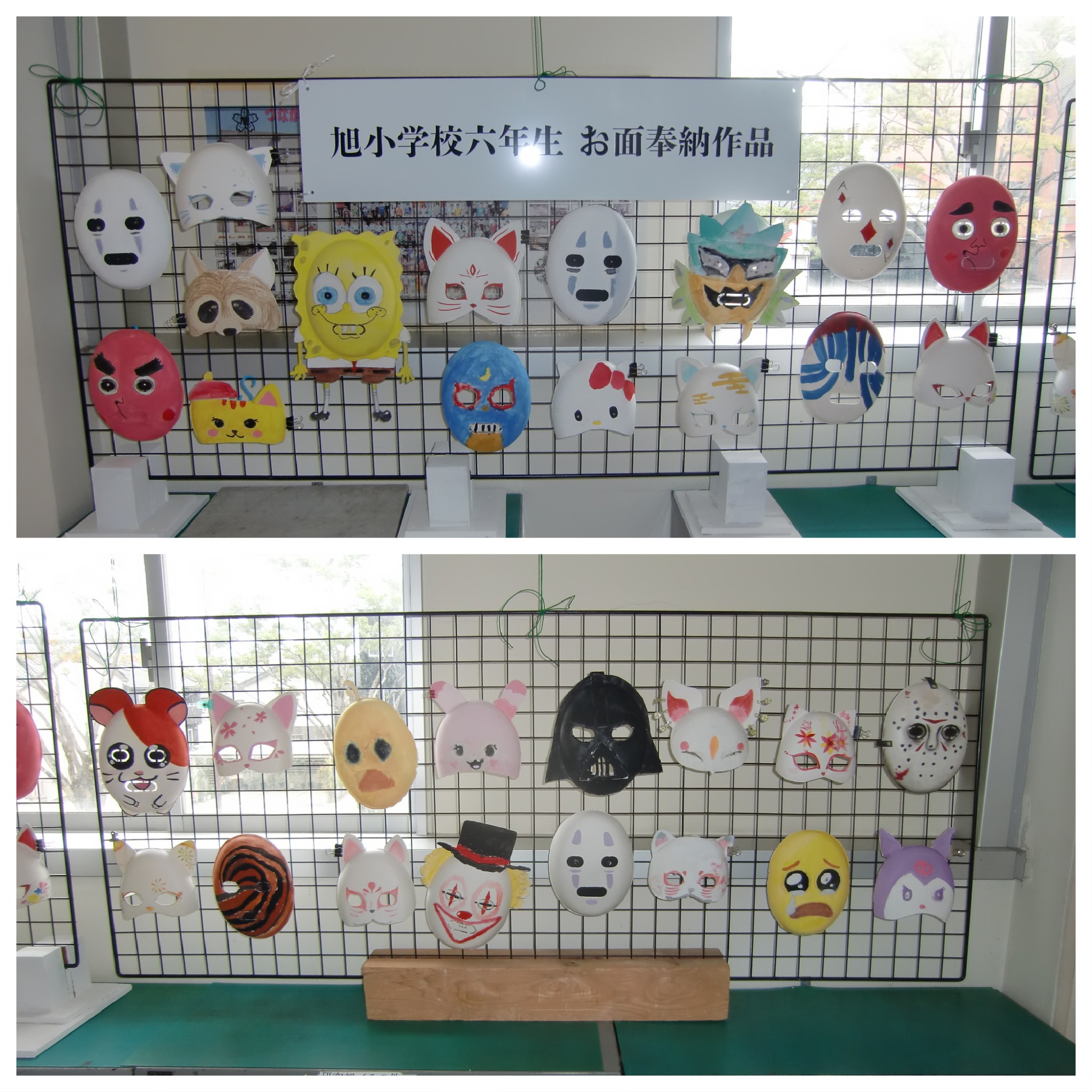 6年生の子どもたちが図工の時間に制作し、火産霊神社の祭礼で展示された作品が、現在、職員室前の