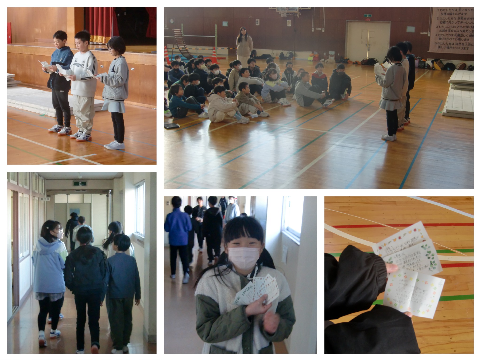 4年生が企画した交流イベントに、6年生を招待しました。内容は、校舎1階に隠されたメッセージカードを