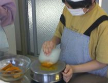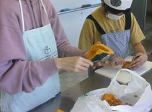 通室生は、かぼちゃを切ることに、やや苦戦しましたが、