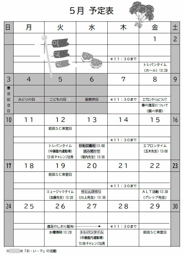 5月予定表です。