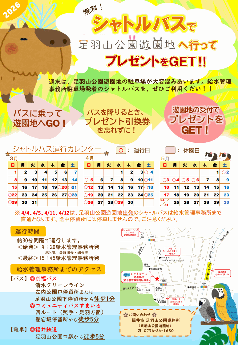 <お知らせ>足羽山公園遊園地シャトルバス案内