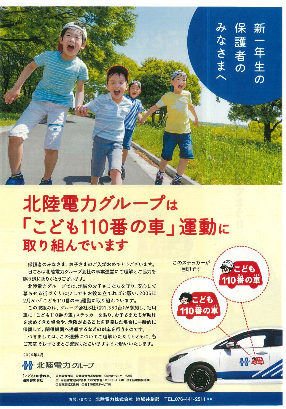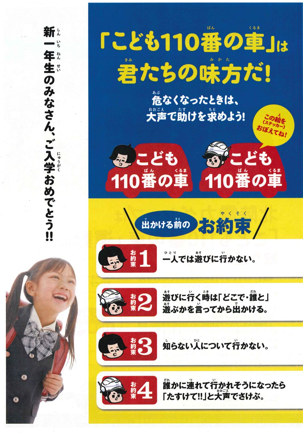 <お知らせ小学校>「こども110番の車」運動チラシのご案内