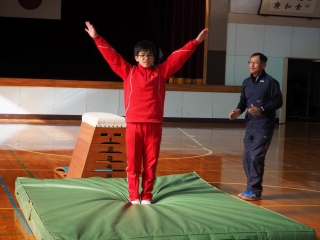 これまで体育で練習を重ねてきた技を、おうちの方に見ていただきました。