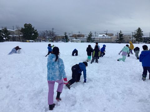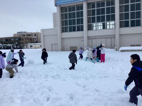 たくさんの雪が積もったので、校庭で雪遊びをしました。