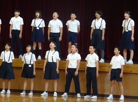 当日に向けて6年生が音楽の時間だけでなく、朝の時間などにも体育館で練習を行ってきました。