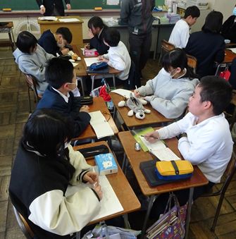 | 本日、2・3時間目を使って、3年生を対象に珠算教室が開かれました。 講師の方を2名お迎えして、そろばんの各部の苗から習いました。 普段の生活でそろばんを使う機会が減少し |