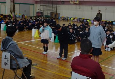 本日、大東中学校2年生12名がキャリア教育の一環として、 スキルアップ研修でプロジェクトを実行するために、本校を来校しました。 6年生を対象に、サッカー的当て、バスケッ