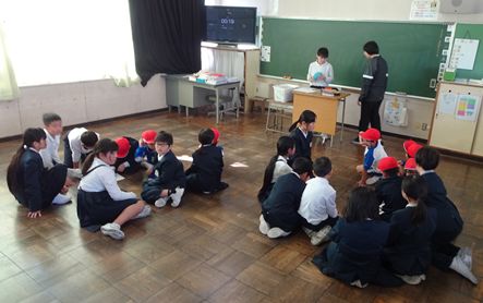 | 本日、1・2年生を対象にキャリア教育を実施しました。 アントレキッズより2名の講師の方をお招きしての開催となりました。 お一人は、「お土産」を商品としている仕事について |
