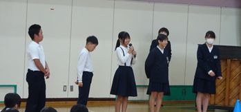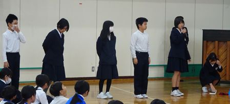 | 本日、本校体育館にて、東藤島地区敬老会が行われました。 百歳の方や米寿の方々のお祝いも重ねてありました。 式典では、本校児童代表3名が作文を読みました。 本校では、お年寄 |