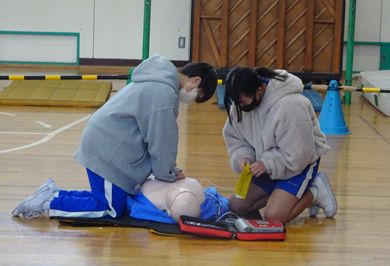 心肺停止または、呼吸停止に対する一次救命処置の方法を学習しました。