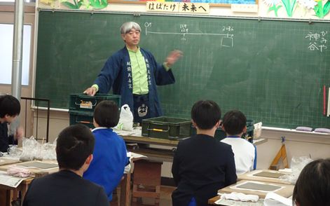 | 本日3年生が豆腐づくりを体験しました。 国語で「姿を変える大豆」を学習しているところです。 大豆が、味噌や醤油などいろいろな食品に姿を変えて役立っていることを学習します |
