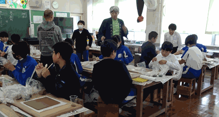 講師に神谷さんをお迎えし、陶板づくりの基礎を教えていただきました。