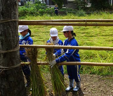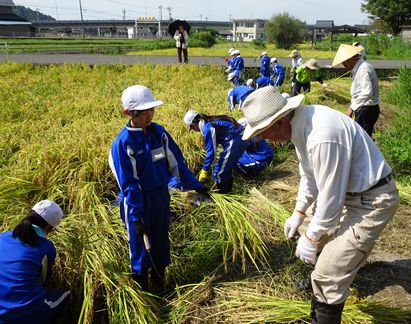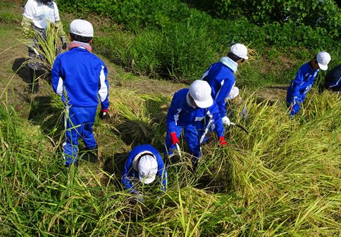 稲を鎌で刈る作業は、収穫の喜びを肌で感じる活動です。