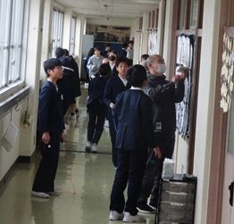 廊下を使っての活動なので、広がって周りと交錯しないように