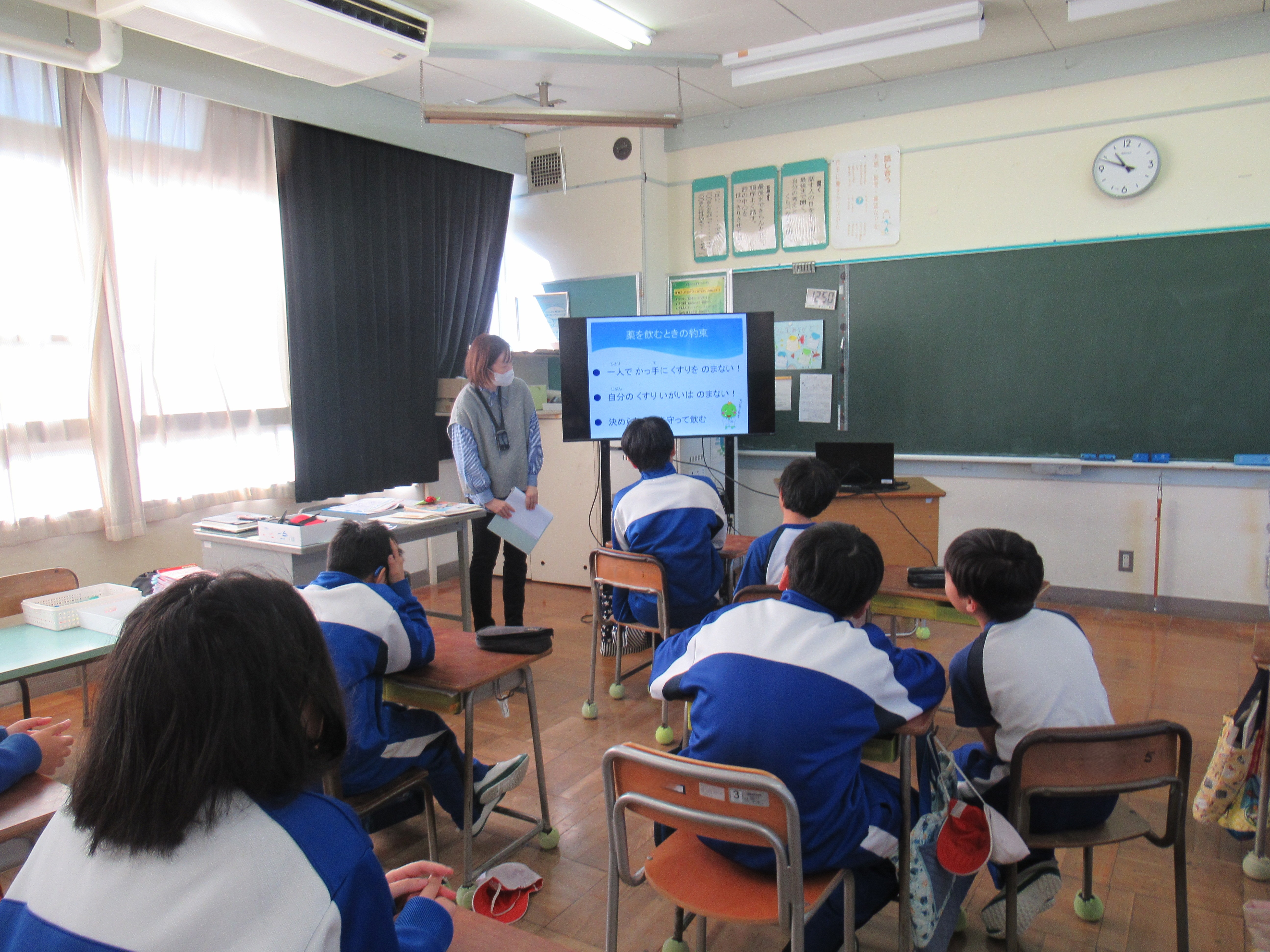 3限目に5年生が学校薬剤師の笠松先生をお招きして