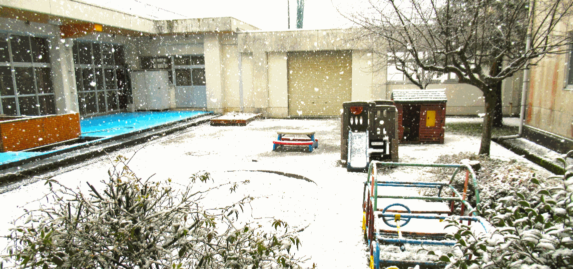 この寒さでも、校舎内からは子どもたちの元気な声が聞こえてきます。