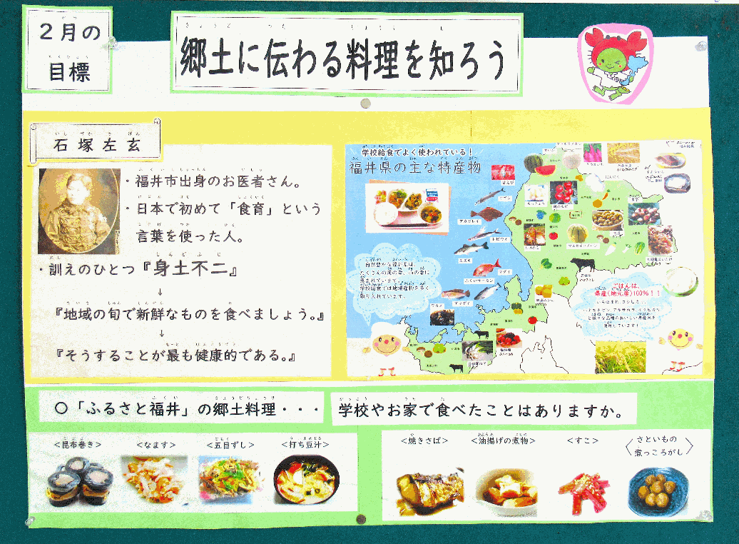 2月の給食における目標は、「郷土に伝わる料理を知ろう」です。