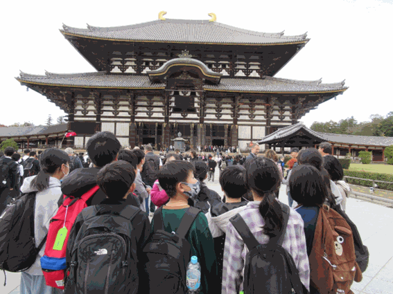 | 校外学習では、朝倉氏遺跡復原町並みや博物館など、それぞれが選択したルートごとに福井市の名勝を回り、知識を深めました。歴史的な建造物や、福井市にゆかりのある人物・出来事 |