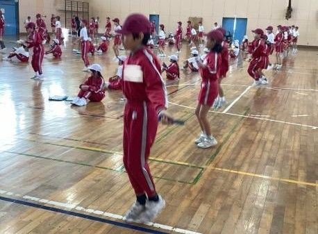 当日は、5分間の時間跳びと、あや跳び、二重跳びに挑戦しました。記録更新を目指して真剣な表情で跳ぶ姿や、友達の挑戦を大きな声で応援する姿が見られ、体育館は温かい拍手と声援に包まれました。最後まであきらめずに挑戦する姿から、子どもたちの成長を感じることができました。