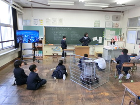 | 5年生が、宿泊学習について、4年生に向けて発表しました。 プレゼンソフトを使って、宿泊学習での経験や学んだことなどを 4年生に分かりやすく、クイズも交えながら上手に発表 |