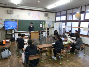 | 昼休みには、2年生が町探検発表会をしました。 お昼の放送で全校に呼びかけたので、たくさんのお兄さんお姉さんが 発表会に参加してくれました。 文殊地区のいろいろな場所につい |