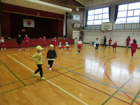 縦割り班ごとに6年生が考えたゲームを楽しんでいました。