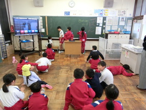 本日の午後は、不審者対応訓練からの引き渡し訓練でした。 今回の引き渡し訓練は、自家用車で迎えに来ることが多いということを 想定して、「ドライブスルー方式」で行いました。