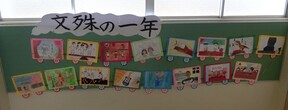 今年度の学校評価アンケートで、「読書に親しんでいる」と答えた 児童の割合が、少なくなりました。 そこで図書室では、学校司書の先生や図書委員会が少しでも本に興味をもって も