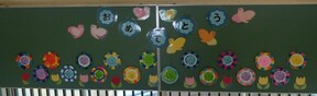 学校内を巡回していたら、3年生教室が楽しい空間になっていました。 図工の『ひもでつないで』という学習で、本来はひもを使って身の回りの ものをつなげたり、形を作ったり、空