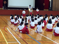 | 明日のスポーツフェスティバルにむけて、全校でリハーサルを行いました。 競技の際の動きや、係活動の動きなどを確認しましたが、本番と同じように 競技をしながら確認していった |