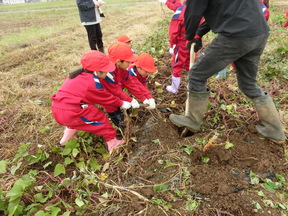 しかし子どもたちは、協力しながらサツマイモ掘りを楽しんでいました。