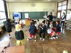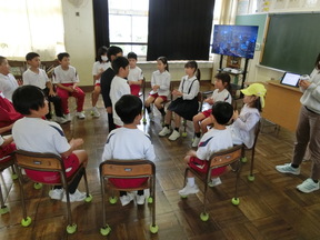 | 2年生の町探検で訪れる予定だった「太田清音会」の宮越さんが、 わざわざ学校まで来てくださって、雅楽の「笙(しょう)」についての お話をしてくださいました。日本古来の楽器 |