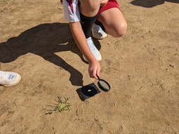 鏡で日光を反射させたり、虫眼鏡で日光を集めたりしていました。
