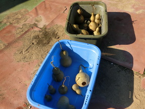 なってきました。長い間水につけておいた瓢箪を水洗いし(激臭がしました)、