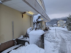 昨日から雪が降り続き、さらに雪が積もりました。 二宮金次郎さんも、雪が重そうです。 [画像:PXL_20260122_224706238.jpg][画像:PXL_20260122_224720495.jpg] 本校花壇の中央に立っている「愛花の像