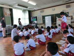 | この時期の文殊小学校は、文殊の火祭りや校内スポーツフェスティバルへむけて、 忙しく活動をしています。そんな中でも先生方は、授業改善のために研究にも しっかり取り組んでい |