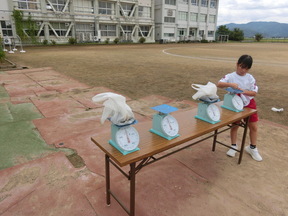 9/12(金)に3年生が算数の「重さ」の学習で「1kgチャレンジ」を