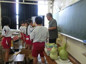 公民館の中村館長が、3年生が取り組んでいる瓢箪づくりについて出前授業に来てくれました。