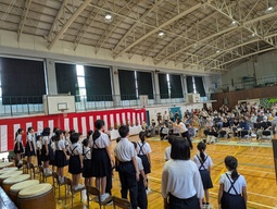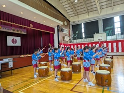 毎年恒例の「文殊太鼓」。地域の方の指導で、夏休みから練習してきました。