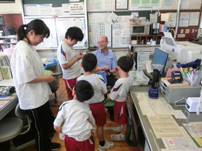 よつば・チャレンジ学級の子どもたちが、職員室へ