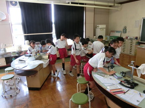 5年生は、理科の時間に顕微鏡を使って、ヘチマや朝顔の