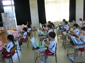 1年生が、音楽の時間にはじめて鍵盤ハーモニカを使いました。