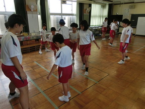 | 毎週土曜日に、地域の方のご指導のもと、9月下旬の「文殊の火祭り」に向けての 練習を行っています。 これまで熱中症対策として、エアコンのきく交流ルームで練習をしてきました |