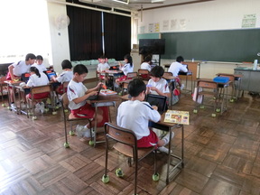| 長い夏休みが終わり、今日から1学期後半がスタートしました。 [画像:CIMG7217.jpg] 久々の登校で、歩きつかれた子もいましたね。 [画像:DSCF5695.jpg] 全校朝礼の様子です。 [画像:CIMG7230.jpg |