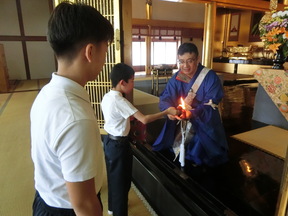 児童代表に文殊の火を分火しました。