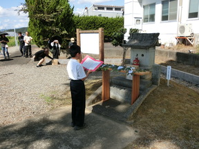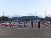 6年生は、校庭で文殊山に向かって夢の発表をしました。